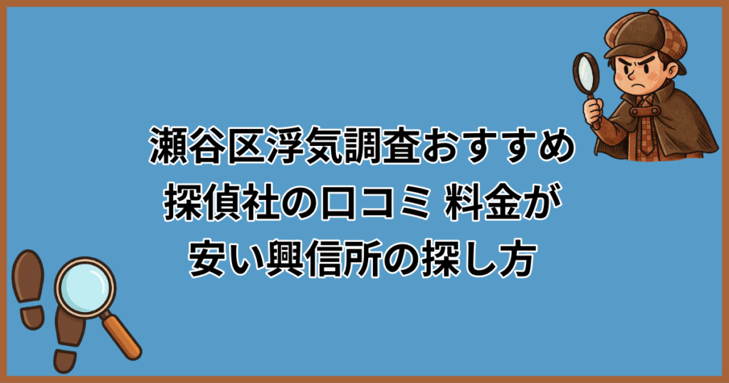 「瀬谷区で浮気調査を頼みたいけど、探偵ってなんだか怪しい…」「調べずに依頼して高額な請求をされたらどうしよう」。そんな不安や疑問をお持ちではありませんか? 実は、瀬谷区には浮気調査に対応している探偵事務所・興信所が数多く存在し、どこを選べ... -