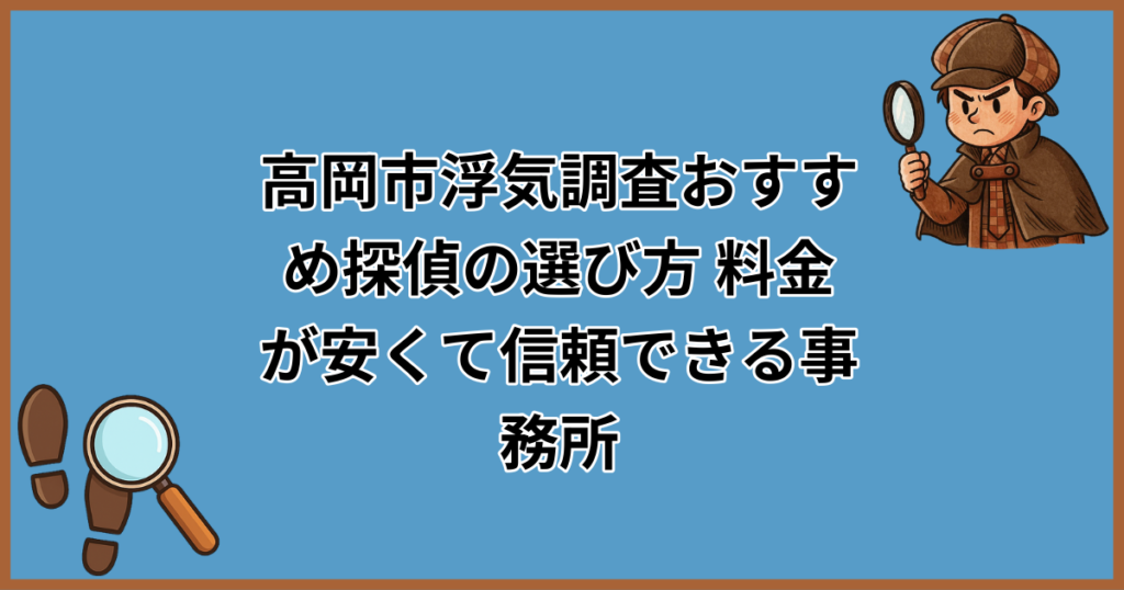 「高岡市で浮気調査を頼みたいけど、探偵ってなんだか怪しい…」「調べずに依頼して高額な請求をされたらどうしよう」。そんな不安や疑問をお持ちではありませんか? 実は、高岡市には浮気調査に対応している探偵事務所・興信所が数多く存在し、どこを選べ... -
