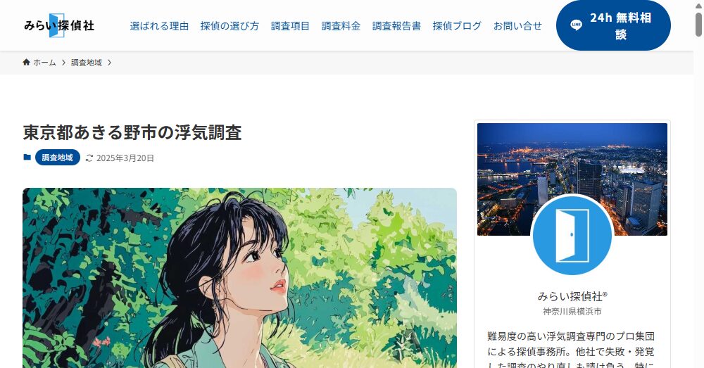 第一探偵社世田谷支部は東京都世田谷区に位置し、あきる野市を拠点とする信頼の探偵サービスを提供しています。