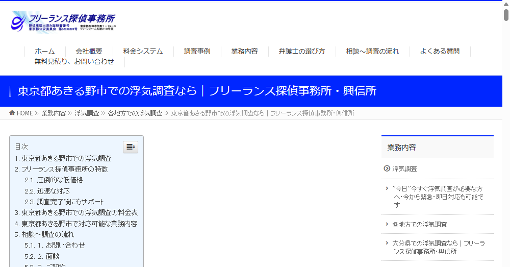 - 東京都を監督官庁とする信頼のプロ集団が、浮気・所在調査や素行調査などの高い専門性で、依頼者の悩みを解決します。