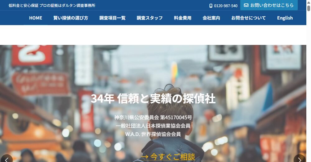 - 34年の実績を誇るダルタン調査事務所は、プロの探偵による高品質な調査を提供し、全国・海外の調査にも迅速に対応します。