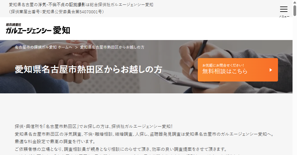 | 公式サイト | https://daiichi-tantei.co.jp/aichi/nagoyashiatsutaku/ |