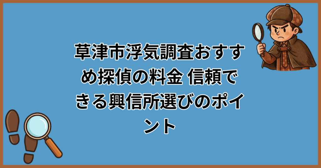 「草津市で浮気調査を頼みたいけど、探偵ってなんだか怪しい…」「調べずに依頼して高額な請求をされたらどうしよう」。そんな不安や疑問をお持ちではありませんか? 実は、草津市には浮気調査に対応している探偵事務所・興信所が数多く存在し、どこを選べ... -