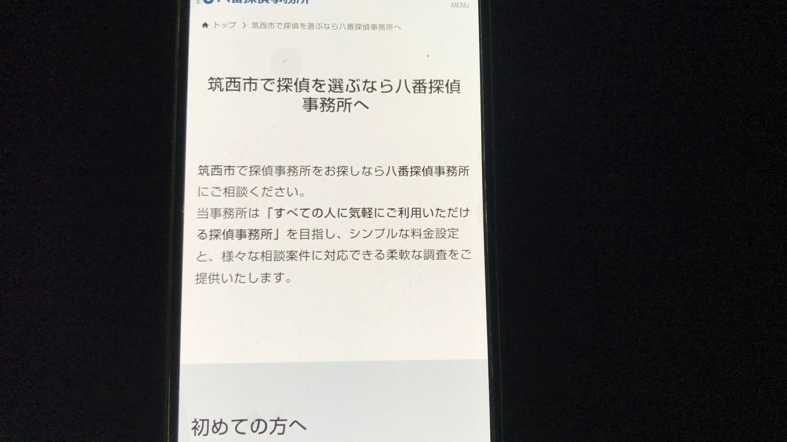 | 調査項目 | 浮気調査 / 素行調査 / 人探し・家出人捜査 / 企業・法人様向け調査 / 盗聴器発見・ストーカー対策 / 士業の方向け調査 / その他調査・トラブル対策 |