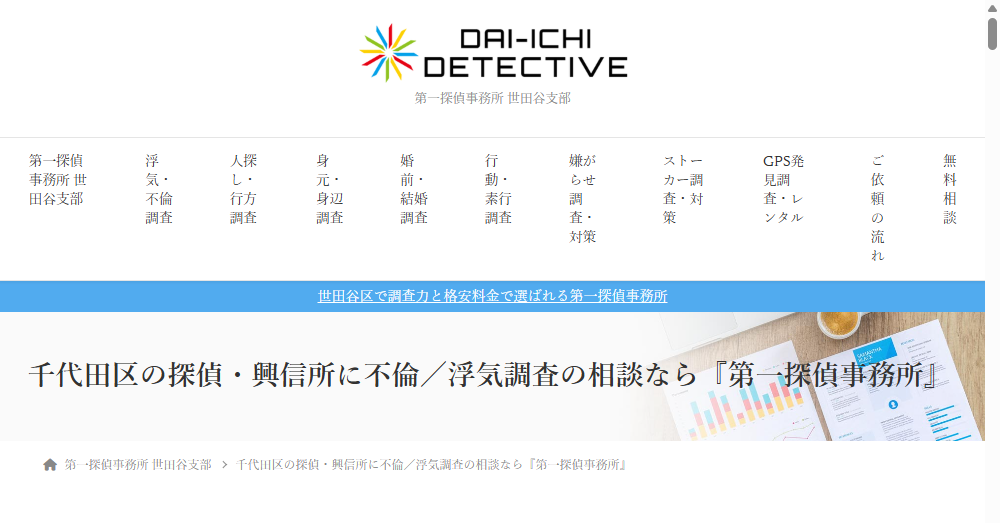 第一探偵事務所 世田谷支部は千代田区に位置する信頼の探偵・興信所で、浮気や不倫の調査を専門としています。