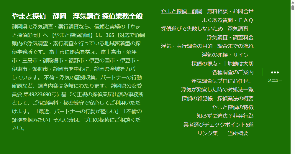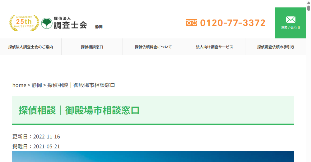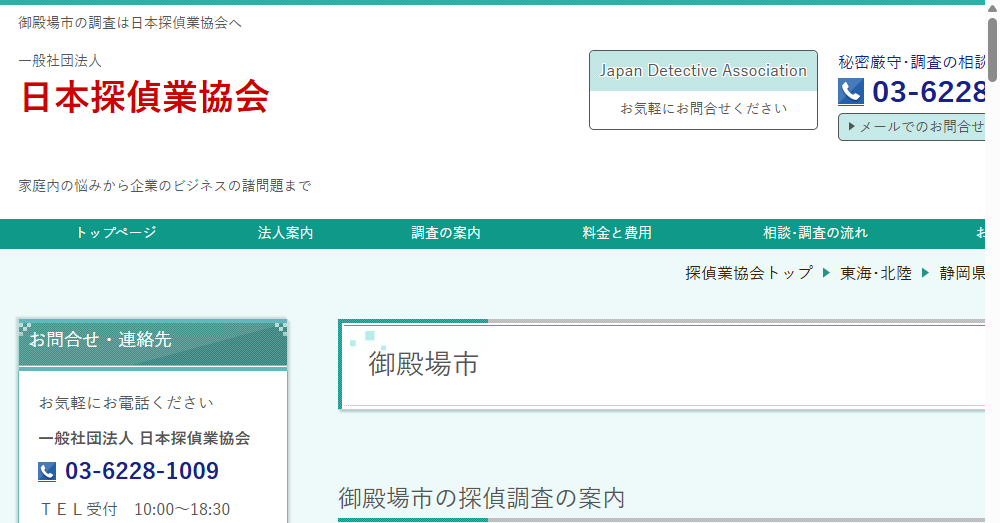 | 公式サイト | 探偵法人静岡調査士会 御殿場市相談窓口 |