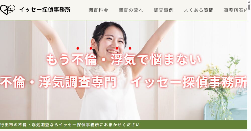 イッセー探偵事務所は埼玉県さいたま市に拠点を置く不倫・浮気調査専門の探偵事務所であり、設立以来多くのクライアントの信頼を得ています。