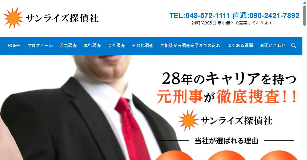 サンライズ探偵社は埼玉県深谷市に位置し、元刑事による専門的な調査サービスを提供する探偵・興信所です。