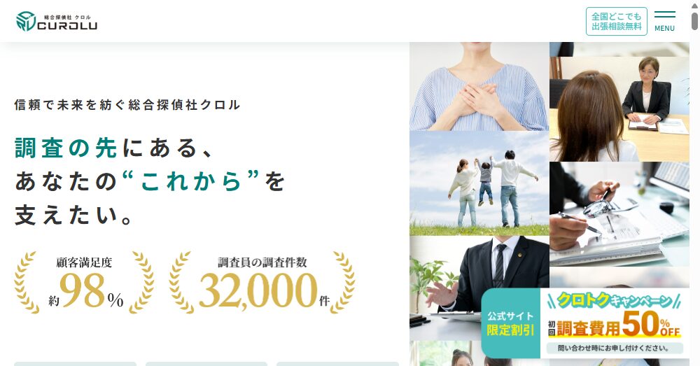 - 初回調査が50%OFFの「クロトクキャンペーン」など、多彩な料金プランで、予算に合わせた柔軟なご提案が可能。