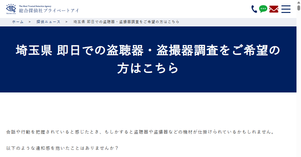 総合探偵社プライベートアイは全国に対応する探偵サービスを提供し、特に埼玉県内での即日盗聴器・盗撮器調査において高い信頼性を誇ります。