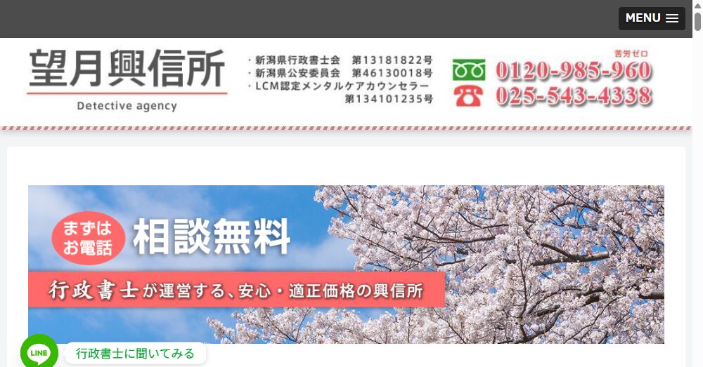 望月興信所は新潟県上越市に位置する、浮気調査や慰謝料請求を専門とした探偵事務所です。