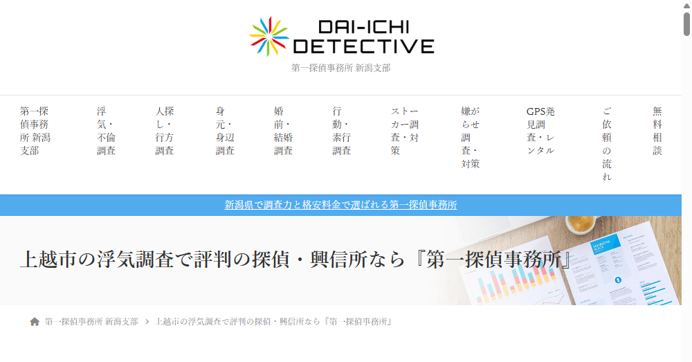 第一探偵事務所 新潟支部は新潟県上越市に位置する、信頼性の高い探偵事務所です。
