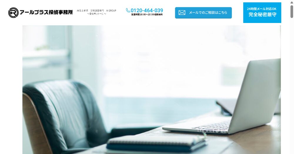 アールプラス探偵事務所は、離婚問題や浮気不倫に特化した専門の探偵事務所で、裁判よりも示談を推奨するアプローチが特徴です。
