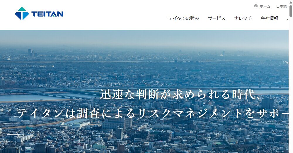 株式会社テイタンは、日本全国に広がるネットワークを有する企業信用調査の総合探偵社で、創業100年の信頼性を誇る会社です。