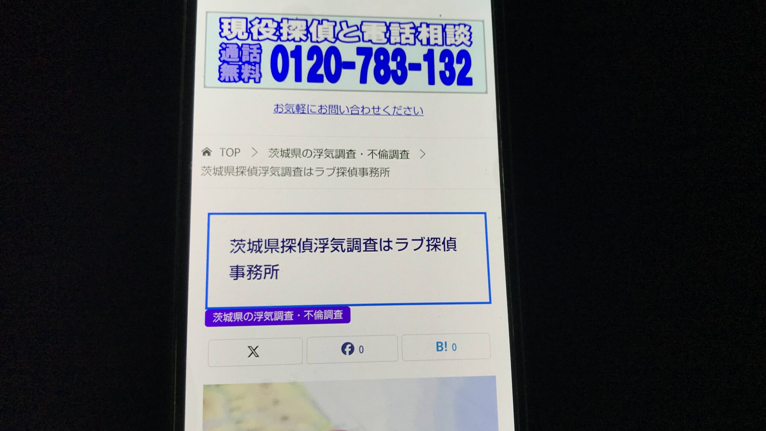 - 茨城県内の浮気調査・不倫調査で20年以上の経験を持つラブ探偵事務所は、他社比圧倒的な低価格と高品質な調査報告書で定評があります。