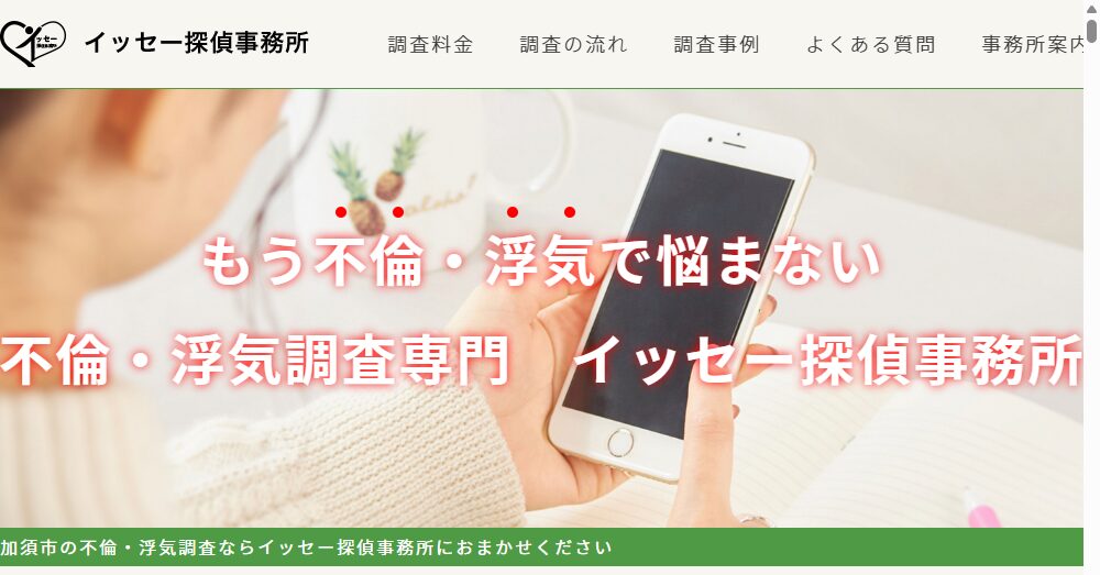 イッセー探偵事務所は不倫・浮気調査を専門とし埼玉県加須市に所在する信頼性の高い探偵業者です。