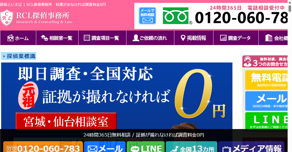 | 公式サイト | https://rcl-tantei.com/area/miyagi/ |