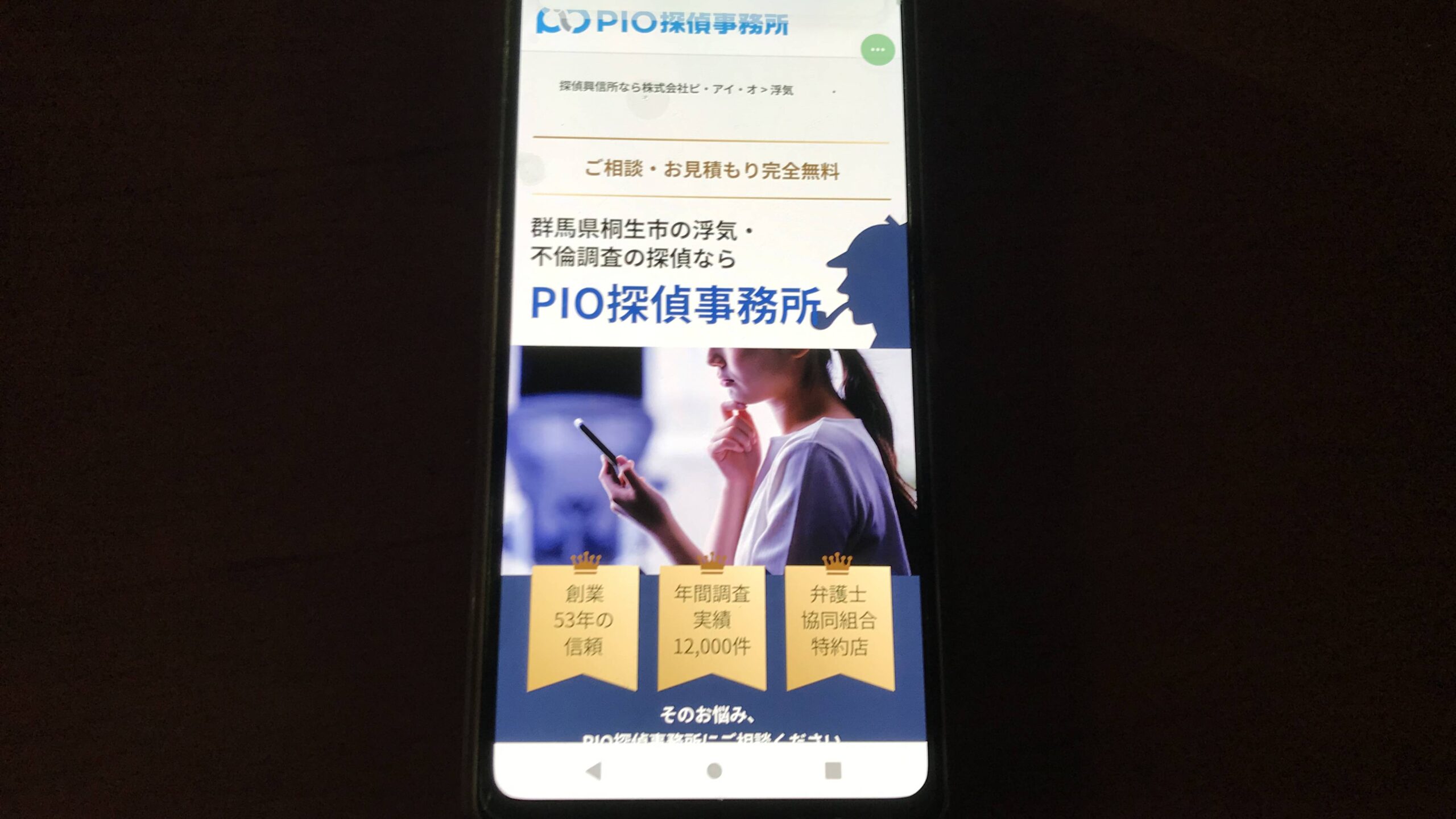 株式会社ピ・アイ・オは群馬県桐生市を拠点とする探偵事務所で、創業以来52年の信頼と年間12,000件の調査実績を誇ります。
