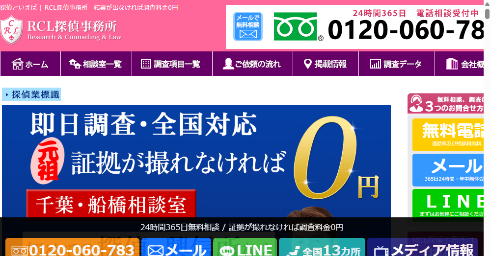 - 全国に拠点を持ち、千葉エリアに特化した経験豊富な調査員による、高精度の浮気調査や人探しサービスを提供しています。