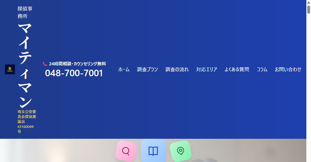 探偵会社マイティマンは埼玉・東京を拠点に、調査を専門とする信頼性の高い探偵事務所です。