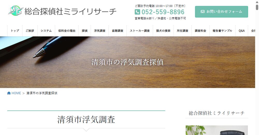 公式サイト https://mirai-tantei.com/kiyosusi-cheating-investigation-eavesdropping-detective-mirai-research