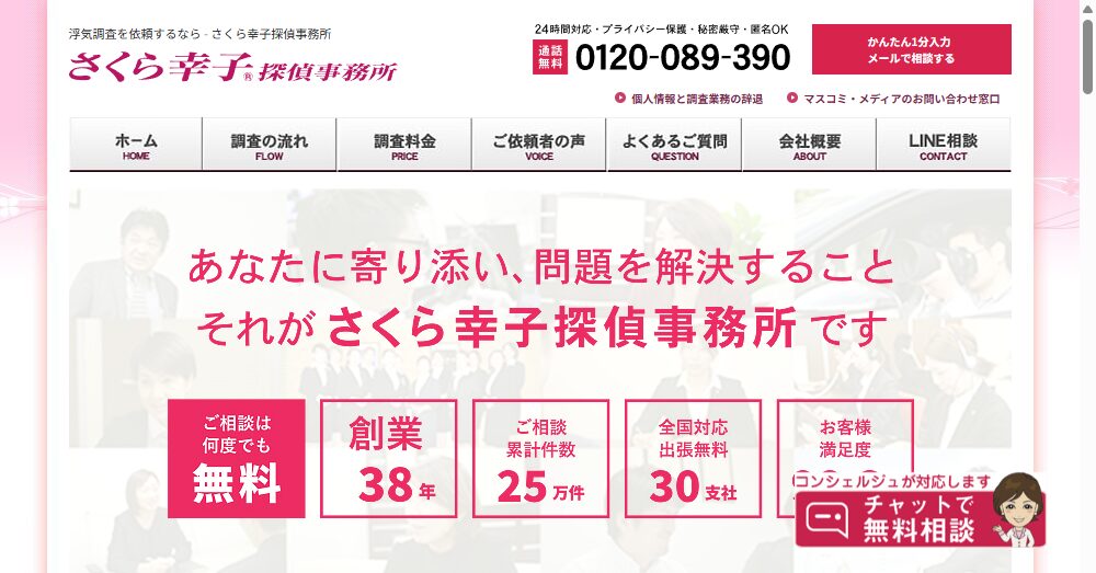 さくら幸子探偵事務所は1988年に創業し、30年以上の信頼と実績を持つ探偵社です。