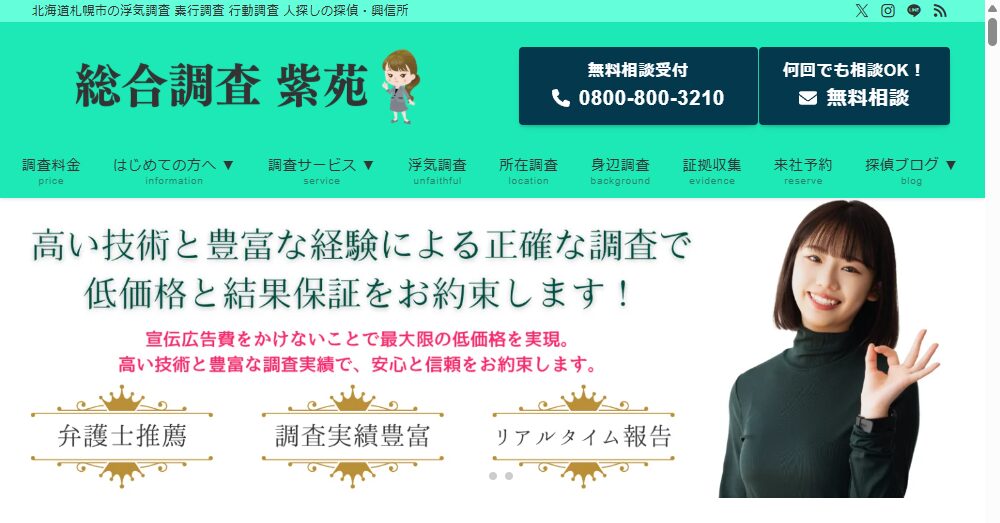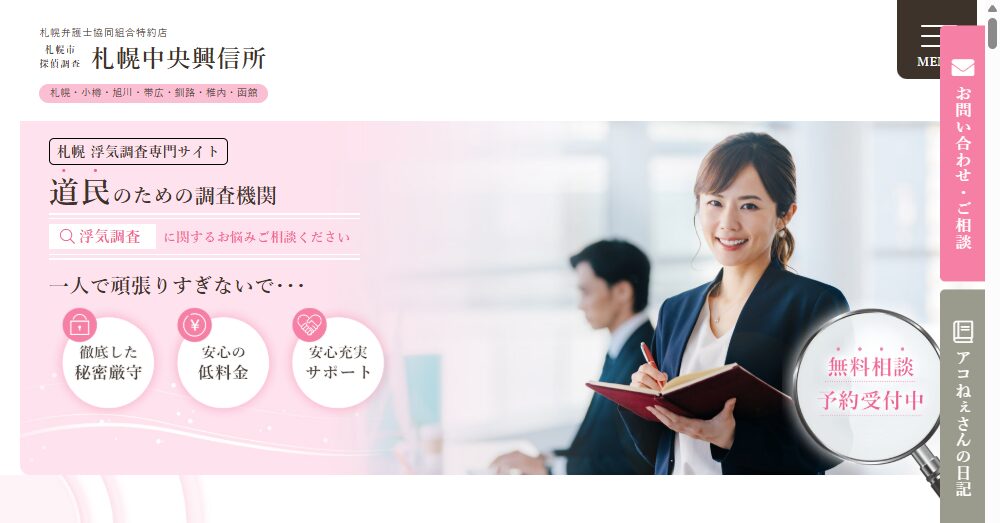 - 札幌の探偵業界での信頼性抜群、北海道女性探偵社は、悪質な探偵社の排除を目指し、安全・安心な調査を提供しています。