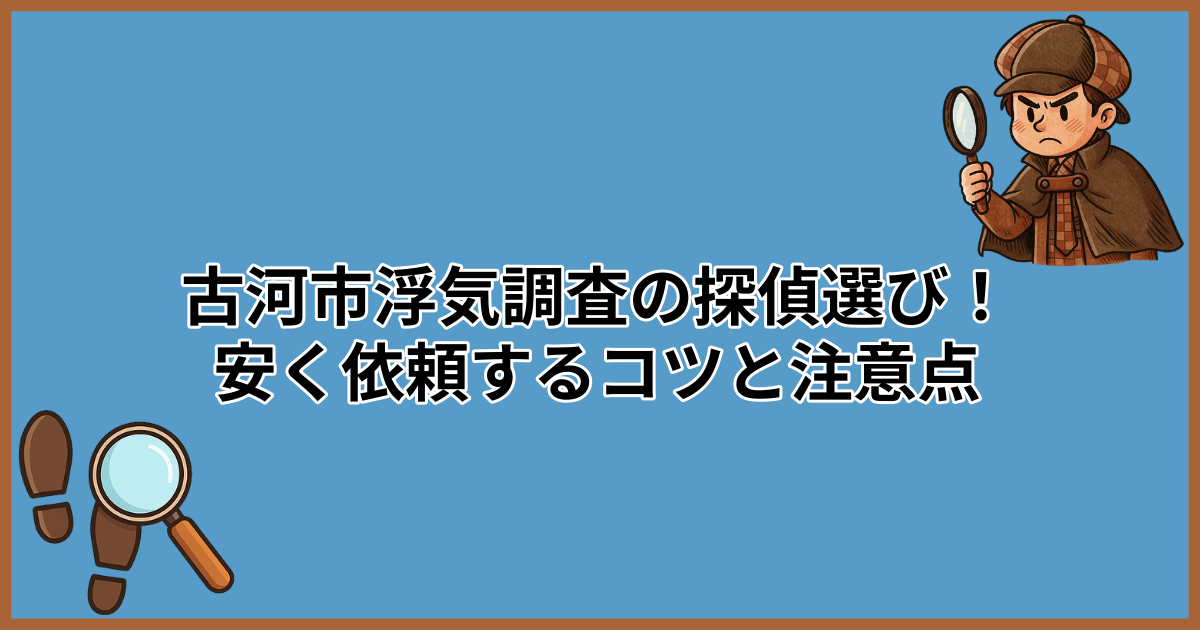 「古河市で浮気調査を頼みたいけど、探偵ってなんだか怪しい…」「調べずに依頼して高額な請求をされたらどうしよう」。そんな不安や疑問をお持ちではありませんか?