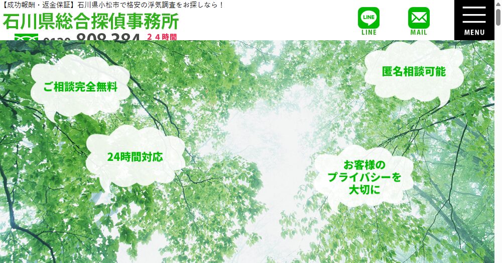 - 石川県・富山県に特化した地元密着型の探偵事務所で、不倫や浮気からストーカー対策まで幅広く対応。