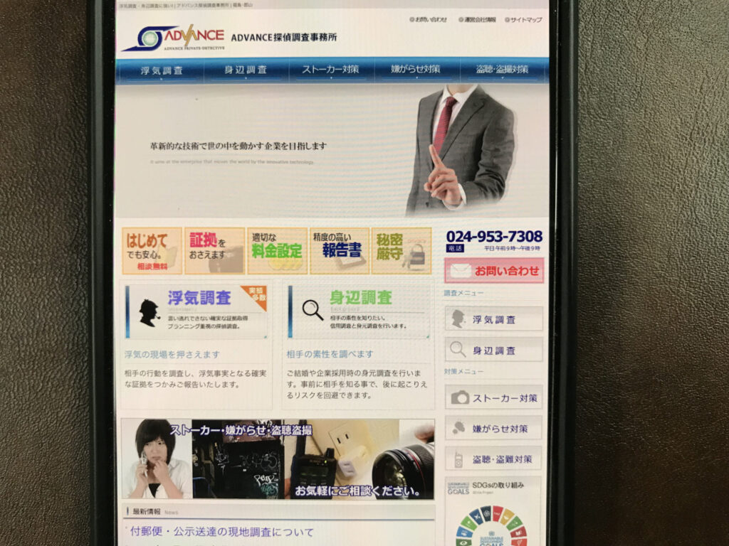 合同会社アドバンスは福島県郡山市に位置する信頼の探偵事務所であり、浮気調査や身辺調査に特化したサービスを提供しています。