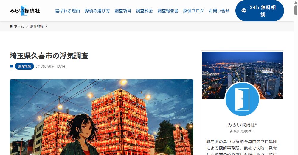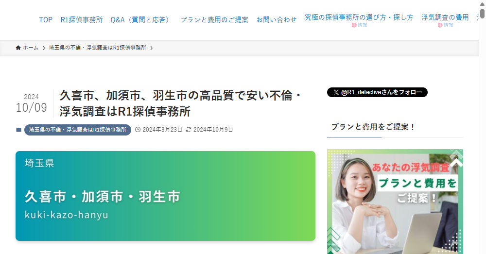 | 公式サイト | https://tantei-mm.com/area/saitama/kuki/ |