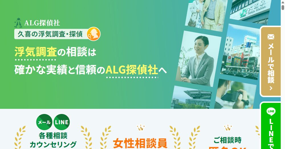 ALG探偵社は久喜を拠点とする浮気調査専門の探偵社であり、法令遵守を重視する大手弁護士法人ALG&Associatesのグループ企業です。