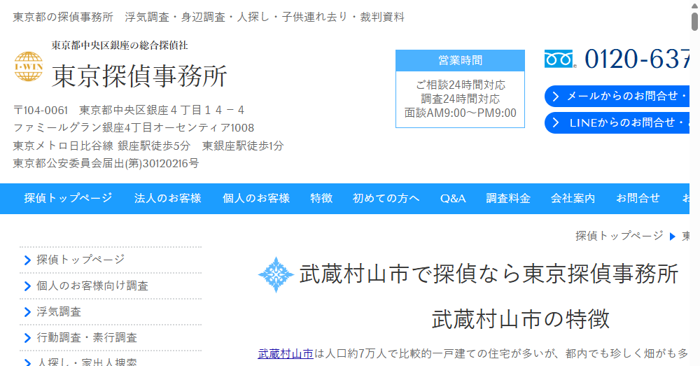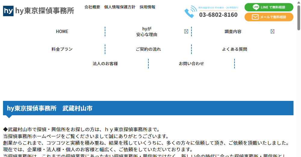 | 公式サイト | https://tantei-tokyo.com/musashimurayamashi/ |