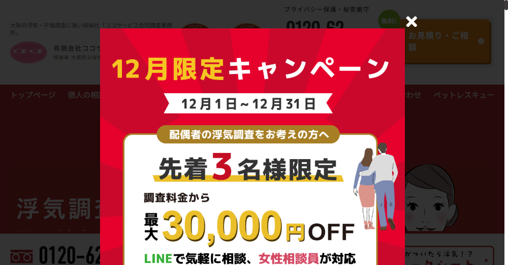 ココサービス合同調査事務所は大阪を拠点に浮気・不倫調査を専門とする探偵社です。