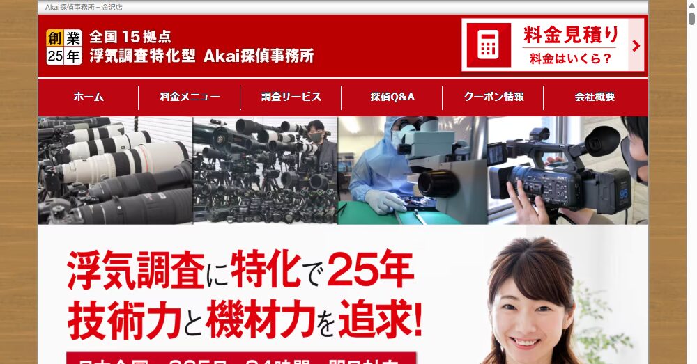 - 創業から60年、北陸地域に密着した信頼の探偵社。浮気・不倫調査を中心に高い成功率を誇ります。