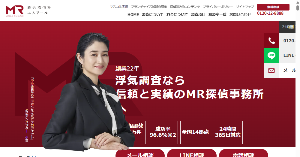 MR探偵事務所は浮気・不倫調査に特化した大手探偵社であり、豊富な経験と高い成功率を誇ります。