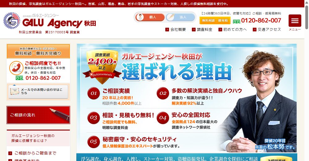 ガルエージェンシー秋田は秋田県を拠点とした探偵事務所であり、全国124のネットワークと約800名のスタッフによって質の高い調査サービスを提供しています。
