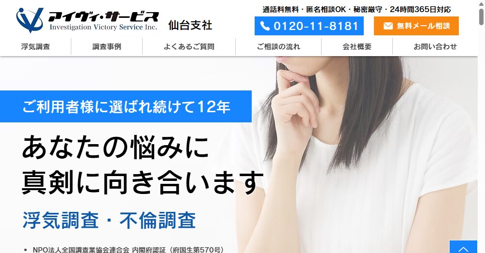 - 宮城県内で12年以上の実績を誇るアイヴィ・サービスは、年間2万件以上の相談を受ける信頼の探偵事務所です。
