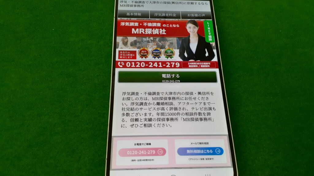 MR探偵事務所は大津市を拠点に浮気・不倫調査を専門に行う信頼性の高い探偵事務所です。