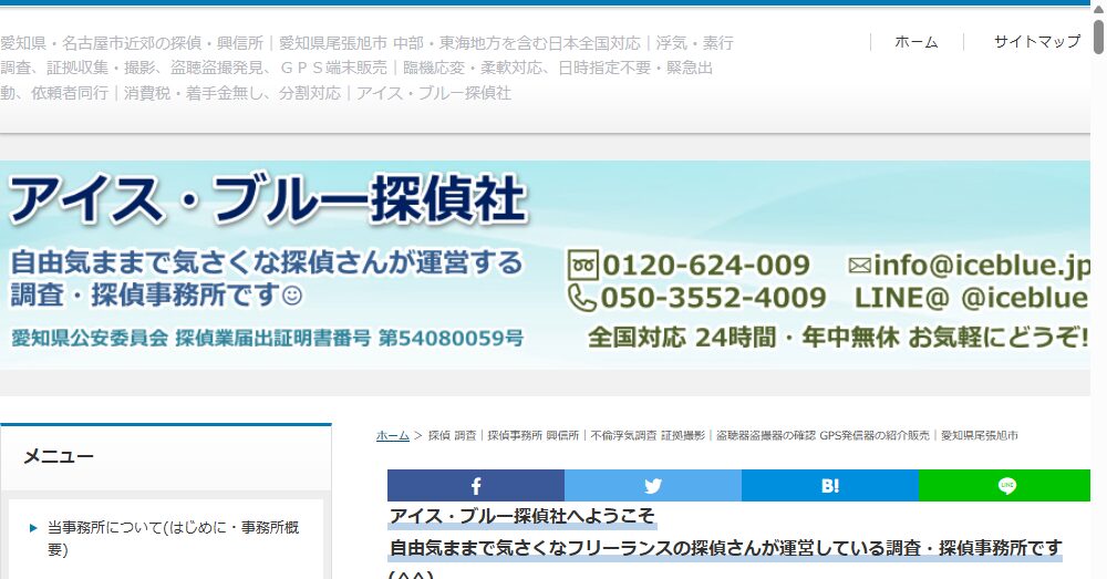 アイス・ブルー探偵社は愛知県尾張旭市を拠点とし全国規模で調査を行う信頼性の高いフリーランスの探偵事務所です。