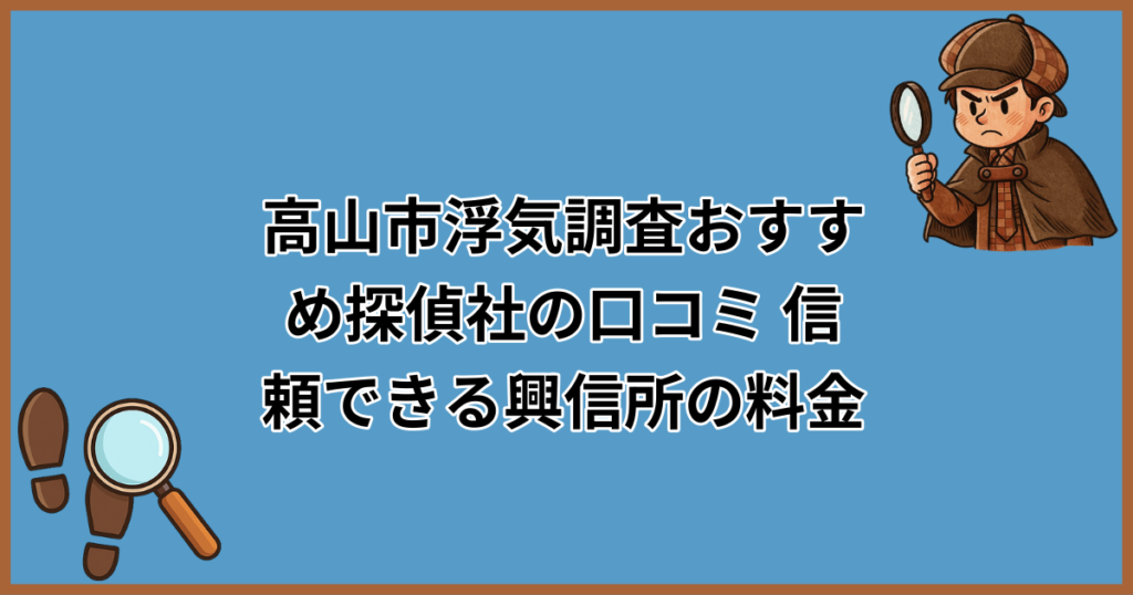 「高山市で浮気調査を頼みたいけど、探偵ってなんだか怪しい…」「調べずに依頼して高額な請求をされたらどうしよう」。そんな不安や疑問をお持ちではありませんか? 実は、高山市には浮気調査に対応している探偵事務所・興信所が数多く存在し、どこを選べ... -