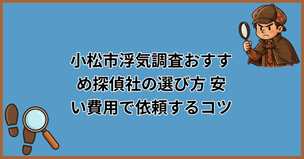 「小松市で浮気調査を頼みたいけど、探偵ってなんだか怪しい…」「調べずに依頼して高額な請求をされたらどうしよう」。そんな不安や疑問をお持ちではありませんか? 実は、小松市には浮気調査に対応している探偵事務所・興信所が数多く存在し、どこを選べ... -