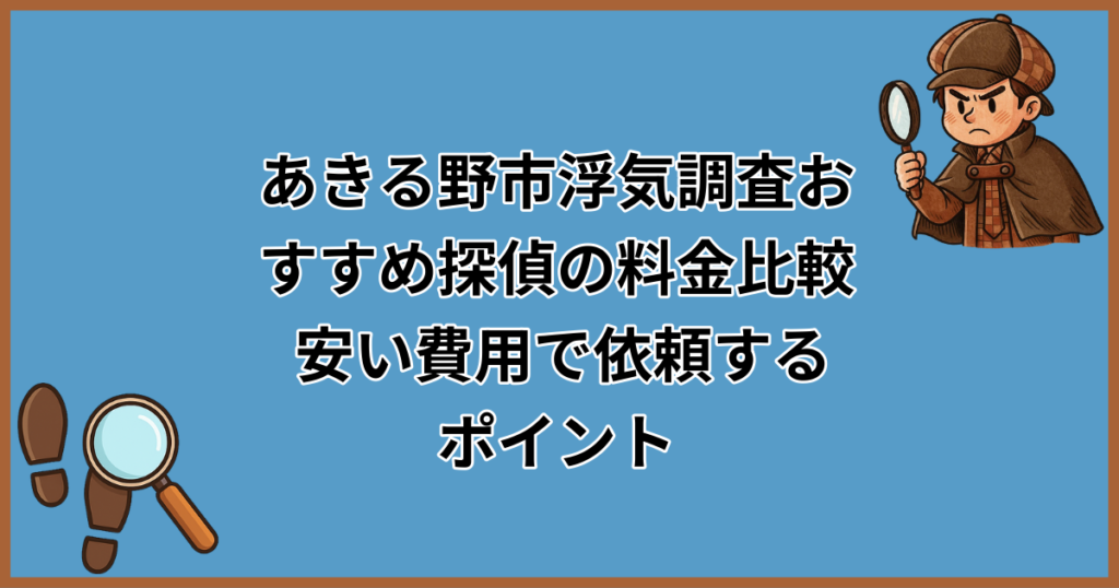 「あきる野市で浮気調査を頼みたいけど、探偵ってなんだか怪しい…」「調べずに依頼して高額な請求をされたらどうしよう」。そんな不安や疑問をお持ちではありませんか? 実は、あきる野市には浮気調査に対応している探偵事務所・興信所が数多く存在し、ど... -