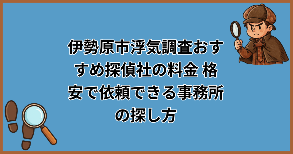 「伊勢原市で浮気調査を頼みたいけど、探偵ってなんだか怪しい…」「調べずに依頼して高額な請求をされたらどうしよう」。そんな不安や疑問をお持ちではありませんか? 実は、伊勢原市には浮気調査に対応している探偵事務所・興信所が数多く存在し、どこを... -