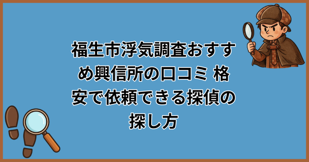 「福生市で浮気調査を頼みたいけど、探偵ってなんだか怪しい…」「調べずに依頼して高額な請求をされたらどうしよう」。そんな不安や疑問をお持ちではありませんか? 実は、福生市には浮気調査に対応している探偵事務所・興信所が数多く存在し、どこを選べ... -