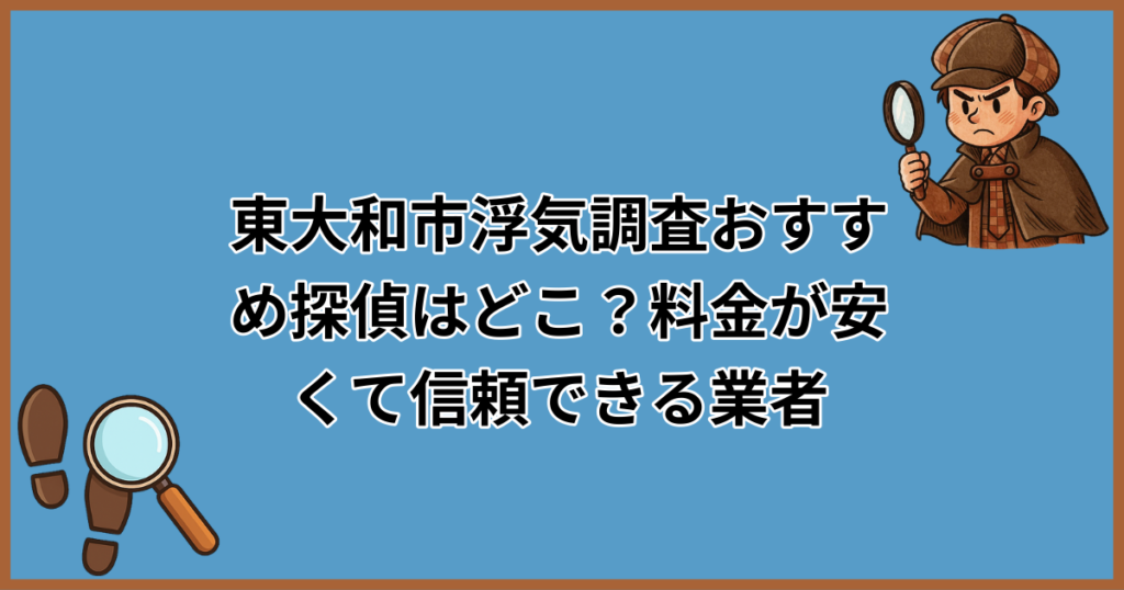 「東大和市で浮気調査を頼みたいけど、探偵ってなんだか怪しい…」「調べずに依頼して高額な請求をされたらどうしよう」。そんな不安や疑問をお持ちではありませんか? 実は、東大和市には浮気調査に対応している探偵事務所・興信所が数多く存在し、どこを... -