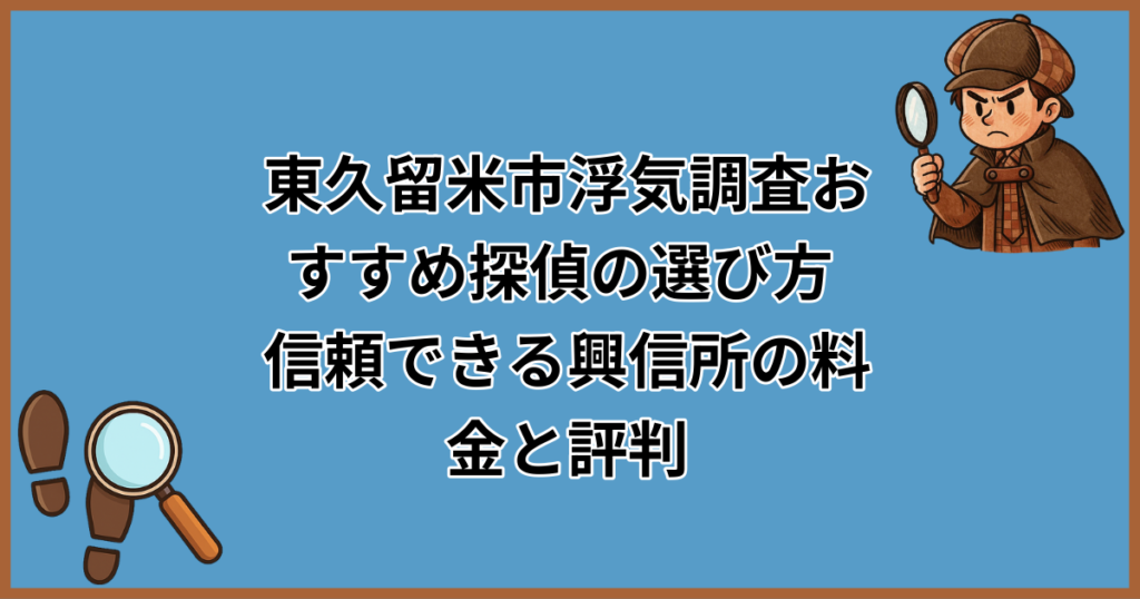 「東久留米市で浮気調査を頼みたいけど、探偵ってなんだか怪しい…」「調べずに依頼して高額な請求をされたらどうしよう」。そんな不安や疑問をお持ちではありませんか? 実は、東久留米市には浮気調査に対応している探偵事務所・興信所が数多く存在し、ど... -