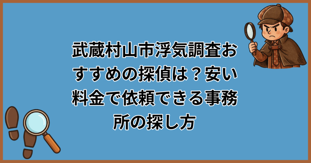 「武蔵村山市で浮気調査を頼みたいけど、探偵ってなんだか怪しい…」「調べずに依頼して高額な請求をされたらどうしよう」。そんな不安や疑問をお持ちではありませんか? 実は、武蔵村山市には浮気調査に対応している探偵事務所・興信所が数多く存在し、ど... -