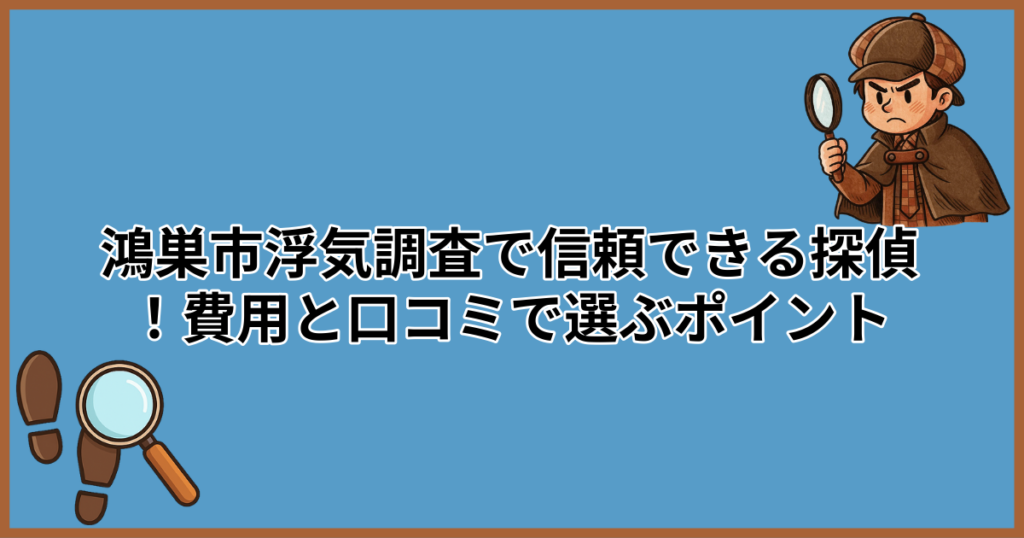 「鴻巣市で浮気調査を頼みたいけど、探偵ってなんだか怪しい…」「調べずに依頼して高額な請求をされたらどうしよう」。そんな不安や疑問をお持ちではありませんか? 実は、鴻巣市には浮気調査に対応している探偵事務所・興信所が数多く存在し、どこを選べ... -