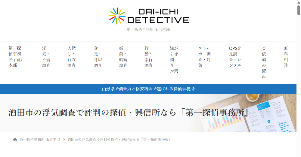 第一探偵事務所山形本部は、酒田市で高い評価を受ける探偵事務所です。
